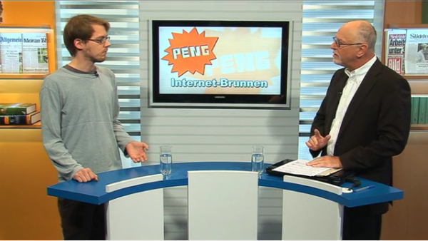 Zwei Peng Spezis (fast) im Fernsehen.Der David stellt seinen sensor vor, der Alex den Internetbrunnen.