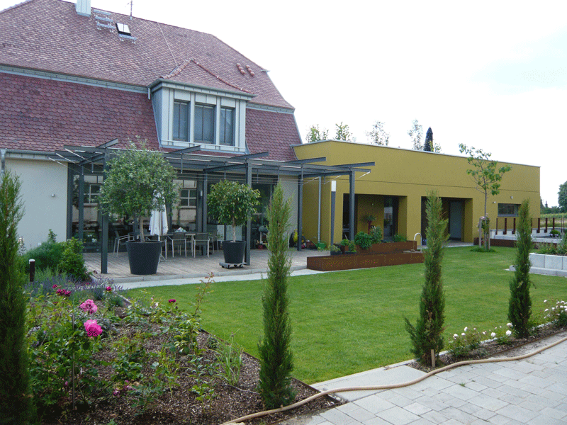 Da unsere Architektur eher puristisch gehalten ist wünschen wir uns schon seit geraumer Zeit, die eine oder andere Wand in unserem weitläufigen Gelände bemalen zu lassen.