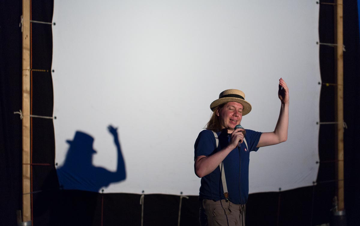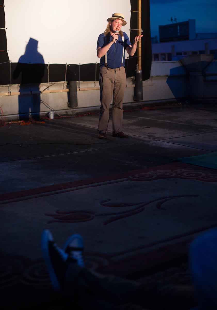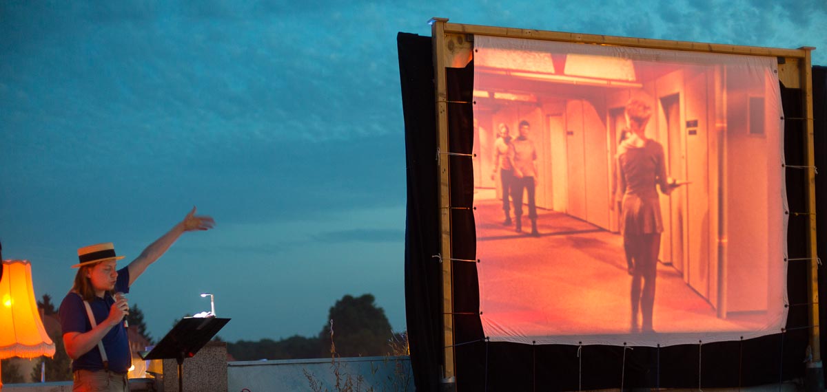 Die Premiere von Spock Poetry in Mainz. Das war ein wahrlich einmaliges Event. Neben einem nostalgisch ratternden Filmprojektor aus den 60er Jahren sitzend, wienerischen Reimen zu einer Star Trek Folge oder witzigen Anekdoten des Veranstalters Ralph Turnheim lauschend – vor einer atemberaubenden Kulisse und einer faszinierenden Wolkenlandschaft im Himmel, die sich prima mit der spontan gebauten Leinwand ergänzte! awesome