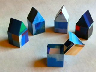 Produkte: bunte und auch andersfarbige Häuschen aus Papier, Advents-, Geschenk-, Schmuck-, Verpackungs-Häuschen