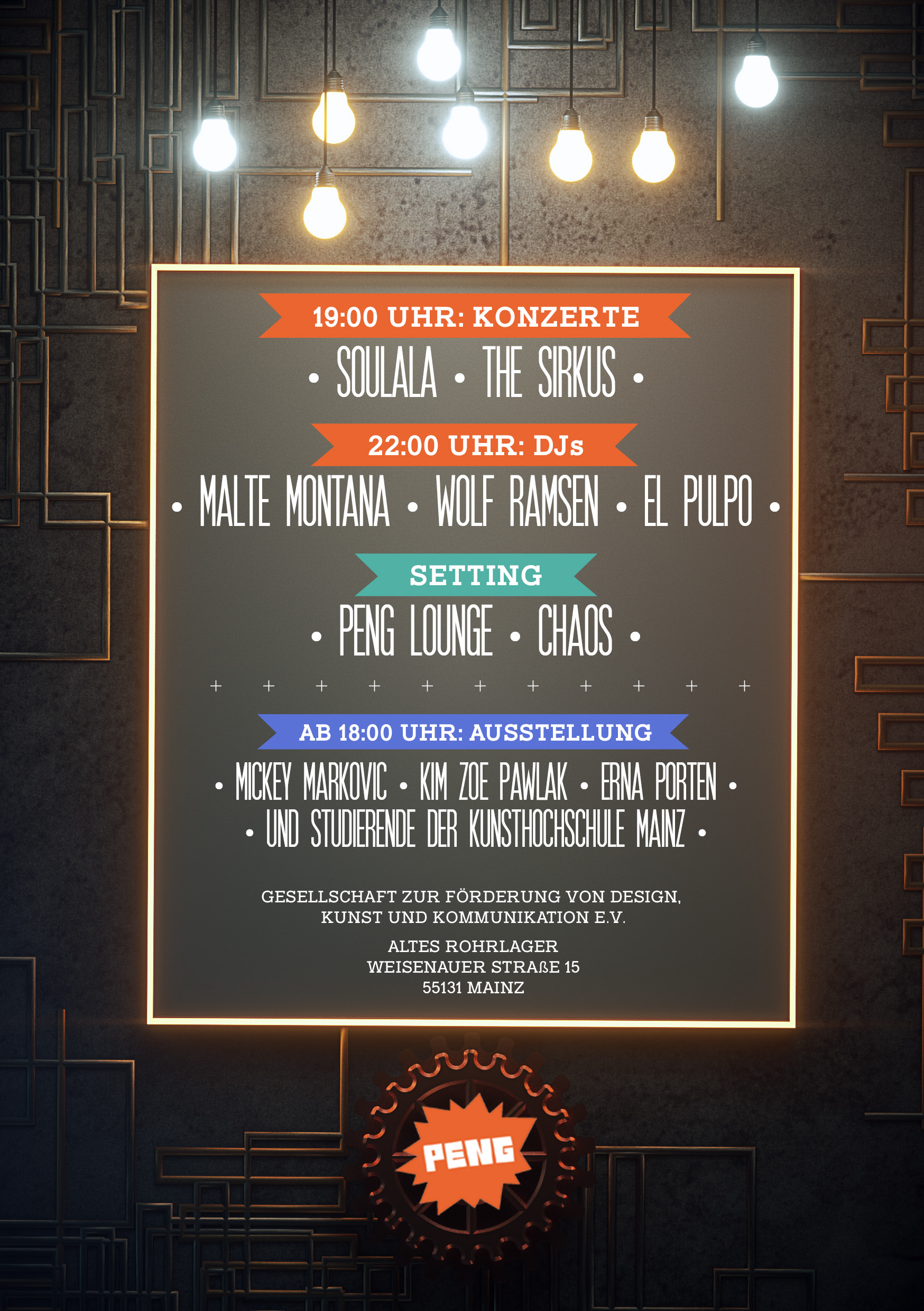 Das Peng zieht ins Alte Rohrlager | Weisenauer Straße 15 | 55131 Mainz. Das möchte es gebührend mit euch feiern!