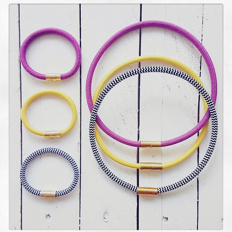 Annassoires sind Ketten und Armbänder aus echtem Textilkabel verziert mit einem praktischen Magnetverschluss. Die Auswahl der Farben reicht vom schlichten Schwarz über Kunterbunt bis hin zu glitzernden Varianten. So ist für jeden Geschmack und Anlass was dabei. Auch die ersten Armbänder für Männer wurden fleißig -handmade- produziert.