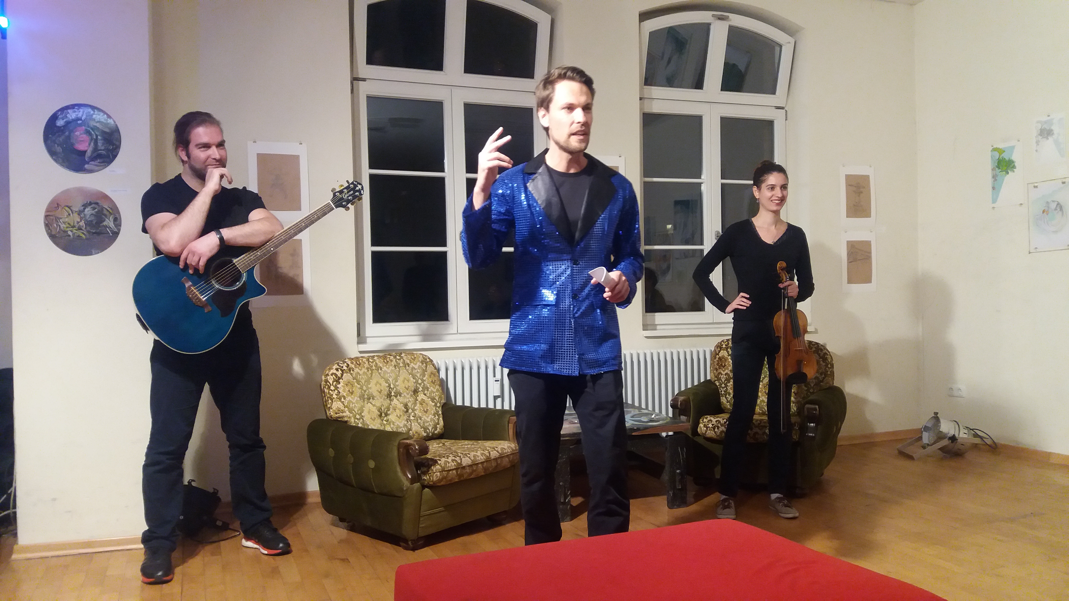 Der Donnerstag Abend (06.10.) war ein Abend voller Erzählungen! Zunächst präsentierte uns Ich-Erzähler einen Story Slam-Sneak Peak mit spannenden Geschichten von Katharina Alf & Antonia Labs. Im Anschluss laß David Weber aus seiner Textreihe „Gott im Schwimmbad“. Last but not least präsentierte uns Skriptlos glücklich sein Improvisationstheater Showformat “Galerie der Geschichten”: