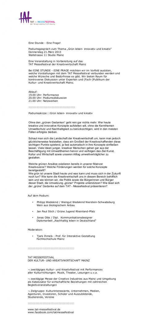 | Eventort: | Konstrast Film - Studio Mainz |