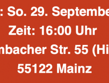 Datum: So. 29. September 2024 Zeit: 16:00 Uhr Ort: Mombacher Str. 55 (Hinterhof), 55122 Mainz Sollten zu diesem Termin nicht die erforderlichen 30 % der Mitglieder anwesend sein (derzeit etwa 20 Personen), wird gemäß §…