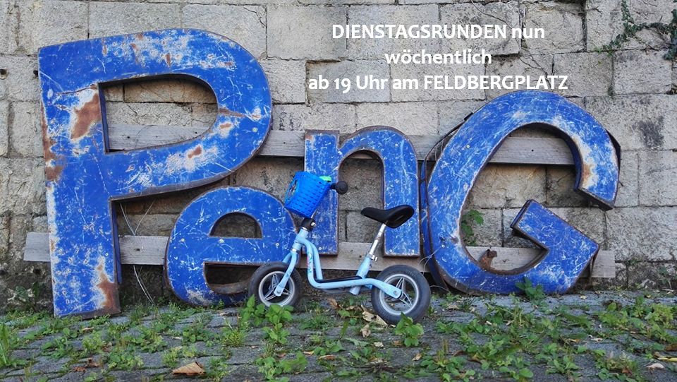 Am DIENSTAG (29.09.) um 19 Uhr laden wir wieder zum Offenen Wohnzimmer ein. Da PENG momentan keine Location hat, ist der FELDBERGPLATZ nun the place to be.